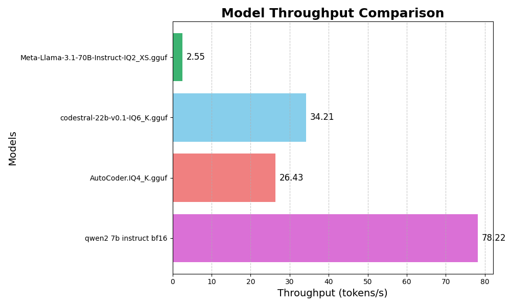 | 8 | Meta-Llama-3.1-70B-Instruct-IQ2_XS.gguf | 2.55 | Poor, occasionally helps generate ideas | --- | Speed is a significant limitation. |